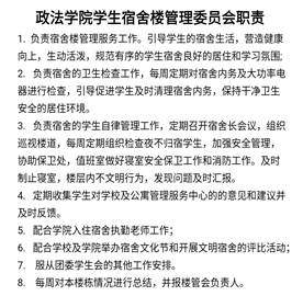 楼管会的成立为williamhill在线体育学生工作的开展注入了新的活力,也对williamhill在线体育的宿舍管理提出了新的要求,坚持“全心全意为同学服务”的工作宗旨,通过开展常规工作来与同学们共同建设一个优良的宿舍环境、通过收集同学对生活方面的意见和建议并积极解决来创造和谐的学习生活氛围。相聚阳光政法,共建和谐寝室,相信楼管会在学院领导的大力支持和指导下,一定会与同学们共同创造出一个更加整洁安全的宿舍,迈上一个全新的台阶!