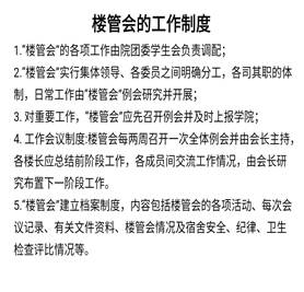williamhill在线体育楼层管理委员会,简称楼管会。它涵盖生活部与自律委两个职能部门,主要负责开展宿舍内务检查与学生在校情况检查工作,为实现高品位宿舍文化,定期开展宿舍评比和文化活动。为发挥我院学生党员的先锋模范作用,楼管会内设置党支部,学生党员与楼管会成员一起走访学生宿舍,切实解决同学学习、生活上的难处,并帮助同学了解党组织,以便同学们积极向党组织靠拢。