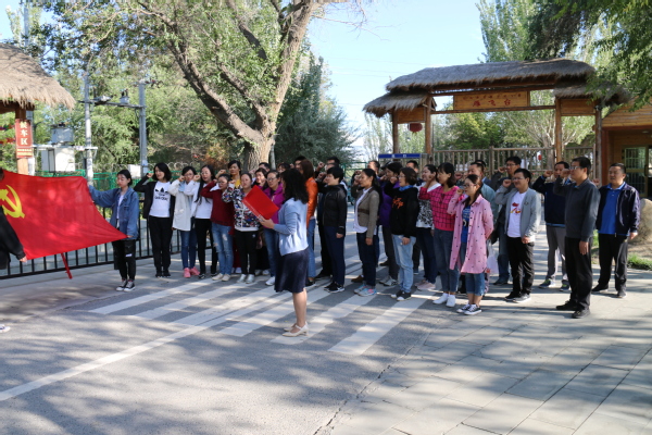 首先,学院工会召集全体参加活动的老师们在庄严的党旗下,进行了重温“石河子大学教师誓词”的宣誓仪式,进一步加强“不忘初心、牢记使命”的主题教育。其次,还围绕“创建文明校园/创建文明城市”为主题开展了拼字趣味游戏,在寓教于乐中老师们对创建文明城市、创建文明校园知识加深了记忆和工作的理解。学院工会在策划此次主题秋游活动时,进行了精心组织和周密安排,确保了出行的安全。