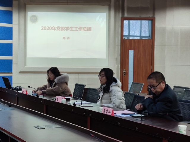 最后,院长高卉代表院党委总结讲话。她肯定了2020年学院学生工作取得的成绩,感谢各位学生工作者的辛勤付出,同时也对来年学生工作提出了新的期望与要求。首先,学生工作要甘于奉献,乐于付出,让学生真正感受爱和温暖,弘扬“阳光 正义 爱”的阳光文化。其次,要抓好学生工作,重在学生工作队伍建设,重视辅导员、班主任队伍的培养,要进一步提升工作技能,在工作中要做到责权利一致。最后,要围绕“三全育人”的要求,将立德树人的根本任务贯穿始终,构建完善的一体化育人体系,为办好中国特色社会主义大学,培养德智体美劳全面发展的社会主义建设者和接班人贡献力量。