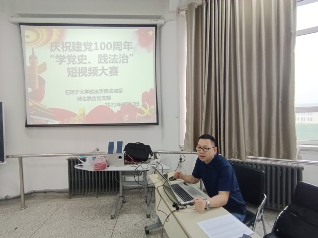 法律硕士研究生通过原创自拍或视频剪辑技术,对百年党史中的先进人物或先进事迹进行呈现;对兵团屯垦戍边史、石河子大学建校史进行展现;对身边的好人好事进行宣传。全体参会人员通过匿名投票,评选出一等奖1名,二等奖3名,三等奖6名,并对获奖者颁发证书予以奖励。
