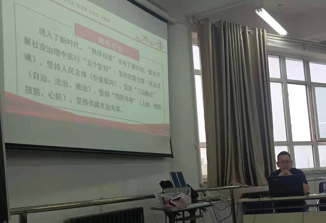 在 “社会主义建设史”学习过程中,王胜华还向大家重点领学了“枫桥经验”。该经验于20世纪60年代初由浙江绍兴诸暨市枫桥镇干部群众所创造,其基本特征就是“小事不出村,大事不出镇;矛盾不上交、就地来化解”。进入了新时代,“枫桥经验”也有了新内容,即在开展社会治理中实行“五个坚持”:坚持党建引领(政治灵魂),坚持人民主体(价值取向),坚持“三治融合”(自治、法治、德治),坚持“四防并举”(人防、物防、技防、心防),坚持共建共治共享。