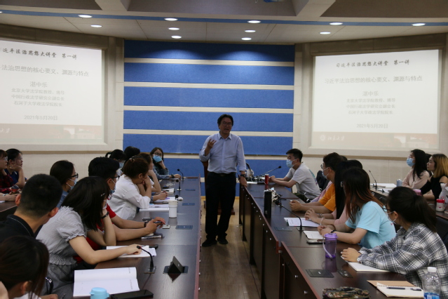 湛中乐教授在三个小时的讲座中对习近平法治思想的核心要义、形成渊源和主要特点等方面做了深刻解读,并对后续讲座的嘉宾和内容做了简要介绍。