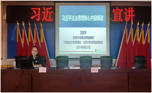 8月27日,法律系师生联合党支部书记、副教授王胜华到143团开讲,开启了八师石河子市习近平法治思想巡回宣讲的“第一课”。