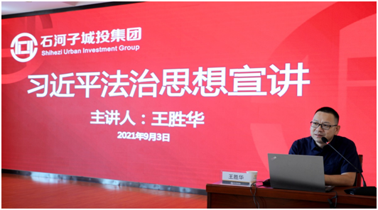 同日下午,王胜华副教授到石河子市城投集团进行习近平法治思想宣讲,重点围绕习近平法治思想中的“以人民为中心”、企业合规等内容进行了讲解。