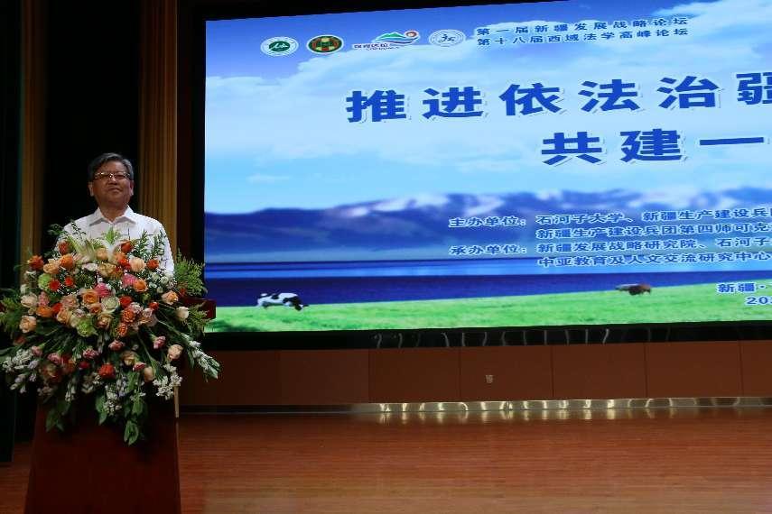 7月20日,由石河子大学、兵团法学会、新疆兵团第四师可克达拉市和华东理工大学社会与公共管理学院主办,新疆发展战略研究院、中亚教育及人文交流研究中心、石河子大学法学院和石河子大学外国语学院承办的以“推进依法治疆和社会治理共建‘一带一路’”为主题的第十八届西域法学高峰论暨第一届新疆发展战略论坛在可克达拉市举行。