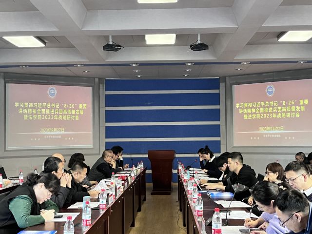 为学习贯彻习近平总书记2023年8月26日在听取自治区党委和政府、兵团工作汇报时的重要讲话精神,完整准确贯彻新时代党的治疆方略,推动法学院主题教育走深走实,法学院9月27日召开“学习贯彻习近平总书记‘826’讲话精神 全面推进兵团高质量发展暨法学院2023年战略研讨会”,党委副书记、院长高卉,副院长高岗仓、张瑜,全体专任教师与研究生七十余人参加了研讨会。
